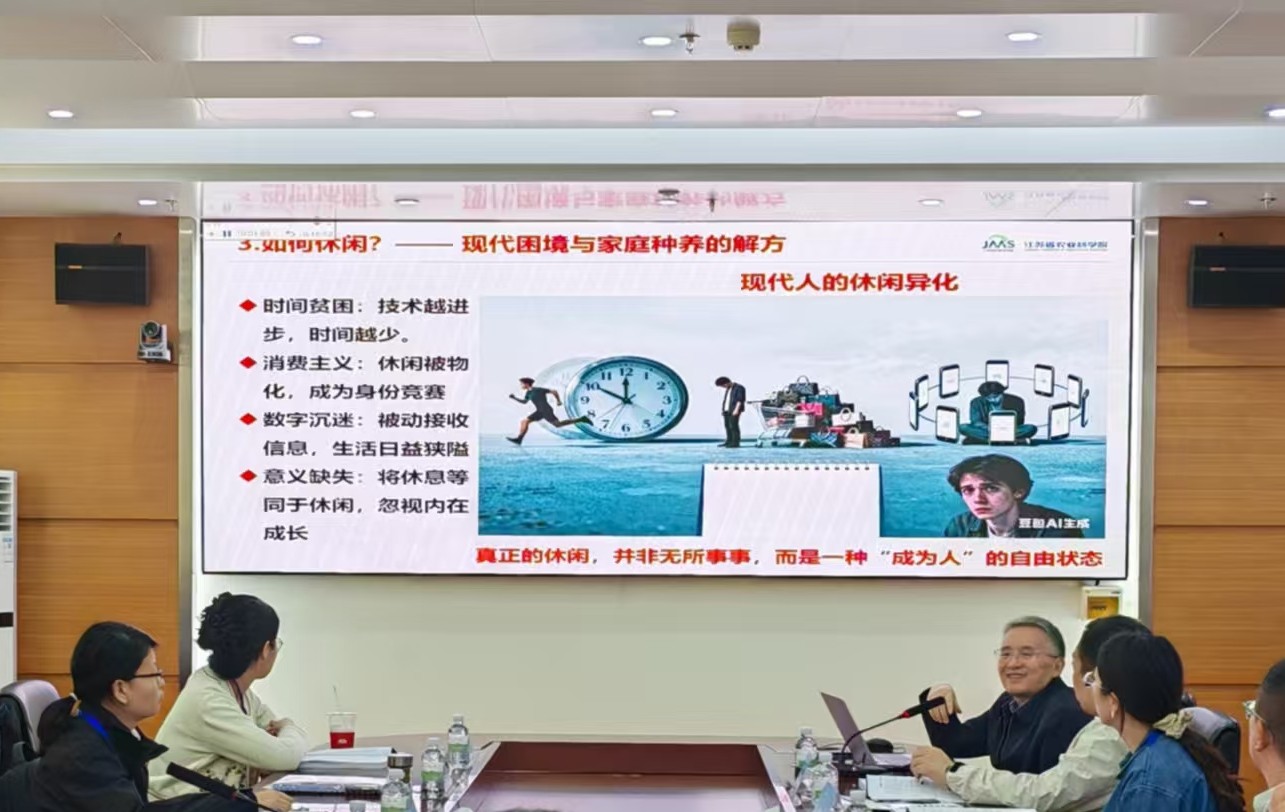 我院副院长、党委委员、中国自然辩证法研究会休闲哲学专业委员会副主任委员孙洪武研究员应邀出席会议,并主持大会主旨报告。专题研讨会上,孙洪武以《家、庭院与种养空间的历史循迹及现代性反思》为题作学术发言,系统阐释中国农耕文明中“家、庭院、种养”三者的互哺结构,梳理其从先秦至明清的发展脉络,从现代性视角审视当下家庭空间异化、城市化进程中的自然联结断裂等问题。他指出,传统生活智慧既具有深厚的历史价值,也为当代生态文明建设、乡村空间保护与生活方式重塑提供了重要启示。