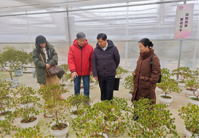 邓衍明一行实地考察了杜鹃花的生长状况,针对其在冬季养护与春季催花过程中面临的关键技术难题,提出了包括大龄植株复壮、幼苗防寒以及强化温度与光照管理等在内的多项建议。同时,结合当前花卉市场的发展趋势,邓衍明还建议公司积极拓展休闲观光旅游等多元化经营模式,从而有效拓宽创收渠道,提升企业的整体盈利能力。