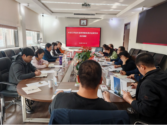 在北京市农林科学院草业花卉与景观生态研究所,所长范希峰主持接待了调研团一行。座谈会上,双方详细介绍了各自单位的基本情况,并就学科发展、人才结构、成果转化及国际合作等多个方面展开了深入交流。双方均表示,希望通过此次调研,建立定期交流和互访机制,在资源共享、平台搭建、科技服务等领域开展实质性合作,共同推动北京和江苏都市型休闲农业产业的协同发展。